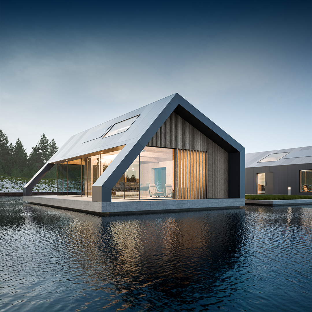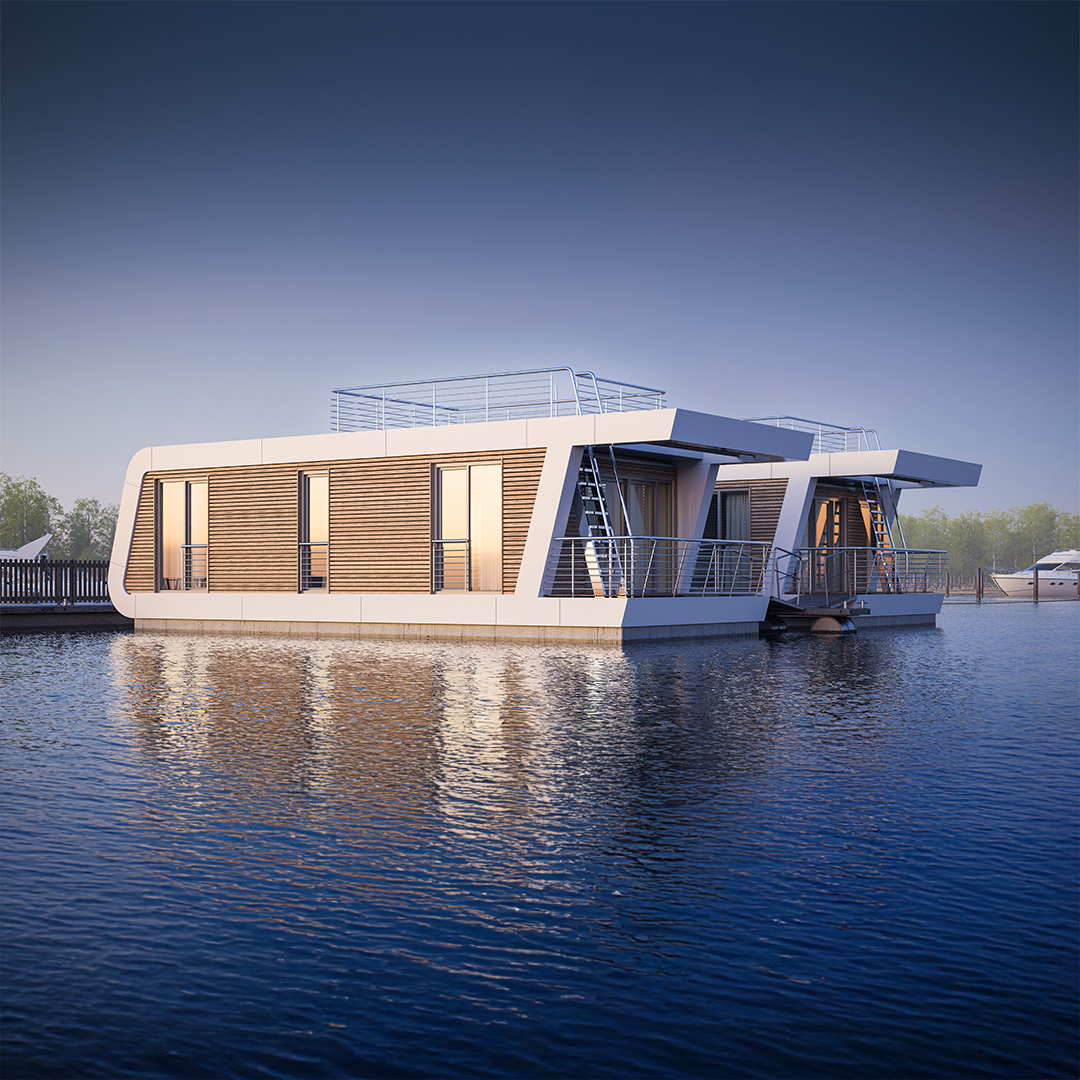 Floating Homes bietet exklusiven Raum auf dem Wasser. Ob als Ferienhaus, Wohnsitz oder Event- und Gastrolocation – die verschiedenen Standard-Haustypen und individuellen Sonderlösungen verwirklichen maritime Sehnsüchte für jeden Einsatzzweck. Alle Häuser von Floating Homes bestehen aus nachhaltigen Materialien, die keinerlei negative Einflüsse auf die Wasserqualität aufweisen. Die Holzrahmenbauweise erlaubt einen Gebäudebetrieb auf dem Niveau von Energiesparhäusern an Land. Die stabilen Pontons aus Stahlbeton sind wartungsfrei und haben eine Lebensdauer von deutlich über 80 Jahren.